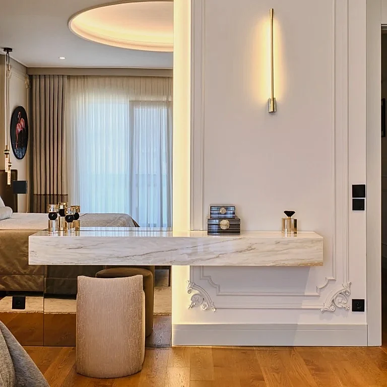 Develi Mimarlık olarak, Tema İstanbul 2 Villa Projesi’nde çağdaş yaşamın tüm ihtiyaçlarını karşılayan bir iç mimari anlayışı benimsedik. Proje genelinde modern çizgiler, doğal dokular ve işlevsel detaylar bir araya gelerek ferah ve huzurlu bir yaşam alanı oluşturuyor.